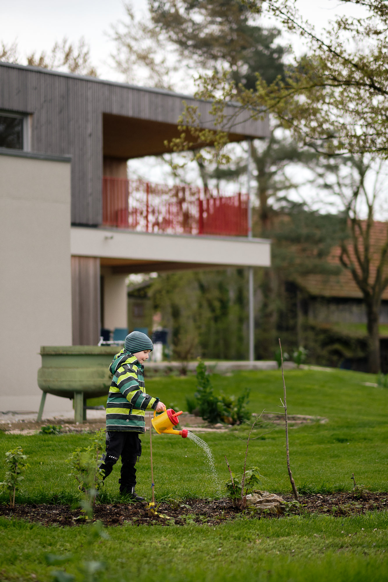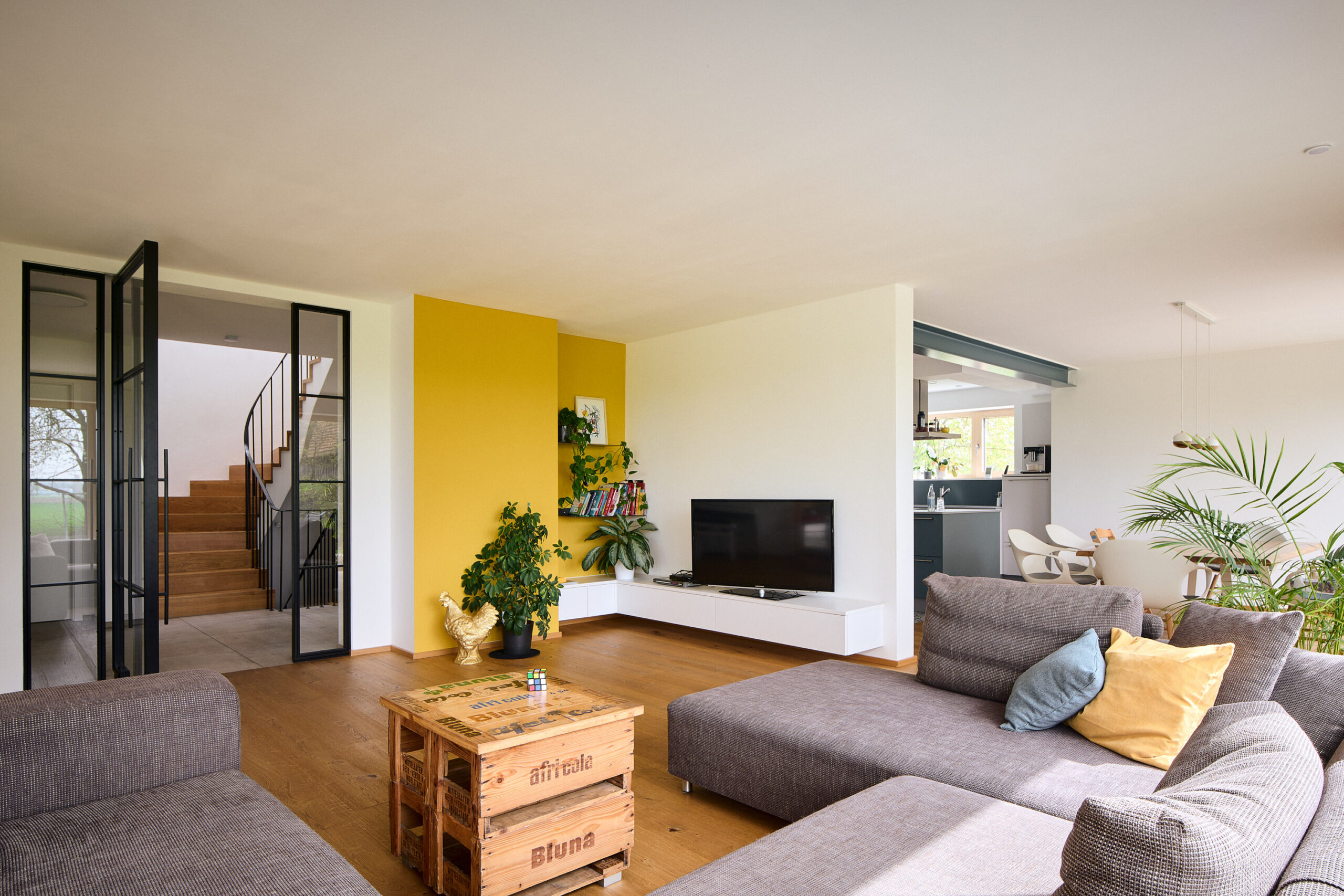 Vom alten Bestand ist im Inneren nichts mehr zu spüren. Das Haus wurde vollständig entkernt, neu strukturiert und liebevoll von der Baufamilie gestaltet.